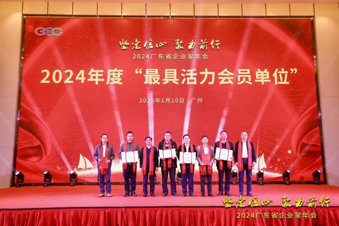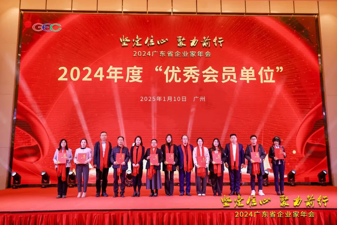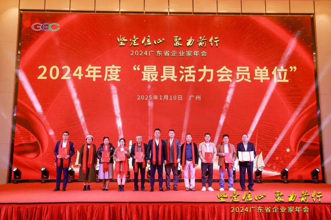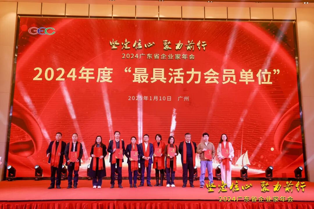 会上,与会领导和省企联常务副会长、副会长等还为2024年度在协会各项工作中表现突出的会员单位和个人颁发了荣誉证书,以感谢他们在过去一年中为协会的改革发展提供的坚强支撑和有力推动,并为大家送去新春祝福。 这次年会如同一座桥梁,连接着省企联和会员企业的过去与未来,让会员企业代表在热烈轻松的氛围中,进一步加深交流联系,增加了归属感与荣誉感,增强了奋进的信心和前行的力量,为赋能2025年的改革发展注入了新活力和新动力。 2024广东省企业家年会在有关会员单位选送的文艺表演节目的欢歌笑语中圆满落下帷幕。 本次年会特别鸣谢(排名不分前后):中邮人寿保险股份有限公司广东分公司、江门市新会区新宝堂陈皮有限公司、珠海华发集团有限公司、韶关华南先进装备产业园管理委员会、重庆太极实业(集团)股份有限公司、广州南菱汽车股份有限公司、广东教育出版社有限公司、康美药业股份有限公司、广东富国供应链管理有限公司。